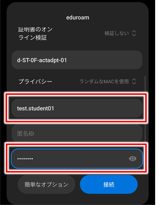 - パスワード欄に「自分のパスワード」を入力する。